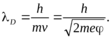3) Электрон после ускорения потенциалом приобретает импульс p = (2me)1/2, которому соответствует длина волны