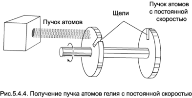 Впервые дифракцию атомов гелия обнаружили в 1930 году Фриш, Штерн и Эстерман. Схема их эксперимента представлена на рис.5.4.4. Из печи с температурой около 800 К выходил пучок атомов