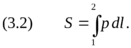 где укороченное действие S равно интегралу от импульса частицы по пути её следования из точки «1» в точку «2»: