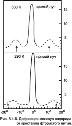 ало отличалась от постоянной решётки. Рассеянный пучок атомов регистрировался детектором, чувствительным элементом которого была металлическая полоска, сопротивление которой зависело от давления окружающего газа. На рис.5.4.5 приведена зависимость регистрируемого тока от угла