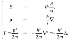 Мы рассматриваем нерелятивистскую частицу в отсутствие внешних полей, следовательно, ее энергия равна p2/2m. Ей можно сопоставить оператор двойного дифференцирования по координате: