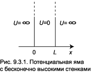 Рассмотрим задачу о прямоугольной потенциальной яме с бесконечно высокими стенками. На рис.9.3.1 ей соответствует потенциал следующего вида: В промежутке 0 < x < L он равен
