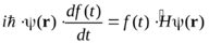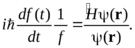 Множитель f(t) отражает волновую природу частиц в квантовой теории. Мы в этом убедимся, когда выведем для него явное выражение. Подставим (1) в уравнение Шредингера (восьмая глава, (1.8)):