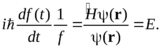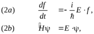 причём второе показывает, что константа разделения E действительно равна энергии системы. Зависимость волновой функции от времени получаем из (2a):