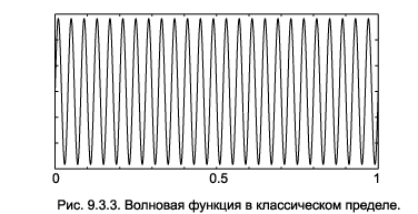 Плотность вероятности, соответствующая очень большим значениям n, быстро осциллирует (рис.9.3.3). В случае прибора с конечной разрешающей способностью в его апертуру попадает много пиков, и мы таких осцилляций не обнаружим. Так квантовая механика переходит в классическую.