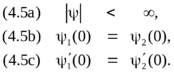 Условие (4.5a) ограниченности волновой функции вытекает из того, что вероятность ||2 обнаружить частицу в той или иной точке пространства должна быть конечной величиной. Требование непрерывности волновой функции (4.5b) отражает отсутствие процессов рождения и аннигиляции частиц. Непрерывность первой производной является следствием ограниченности потенциала. Для вывода (4.5c) уединим вторую производную в левой части уравнения Шредингера (6):