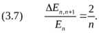 При увеличении квантового числа n энергетическая щель между двумя соседними уровнями (Δ n = 1) растёт медленнее, чем энергия уровней: