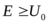 потенциальная энергия терпит разрыв. Энергия налетающей частицы E помечена зелёным цветом. В этом разделе мы будем считать, что энергия частицы меньше потенциального барьера: