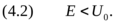 . Формула (4.9) показывает, что квантовая частица может проникать сквозь потенциальный барьер даже в том случае, когда её энергия E меньше его высоты U0. В пределе классической физики величина x0 стремится к нулю вместе с постоянной Планка.