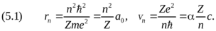 Формулы (1.1) и (3.7) приводит к дискретному набору радиусов орбиты и скоростей электрона, которые можно перенумеровать с помощью квантового числа n: