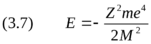 Она получилась отрицательной, как и должно быть для устойчивых состояний. Состояния атомов и ионов с отрицательной энергией называются связанными. Умножив уравнение (3.4) на 2r и заменив в левой части произведение mVr на момент вращения M, выразим скорость V через момент: