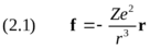 . По третьему закону Ньютона, на ядро действует сила, равная –f (она равна по модулю и направлена противоположно силе, действующей на электрон). Запишем уравнения движения электрона
