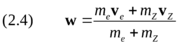 Таким образом, центр масс замкнутой системы движется равномерно и прямолинейно. Теперь поделим (2.2b) на mZ и вычтем его из (2.2a), делённого на me. В результате получается уравнение для относительной скорости электрона: