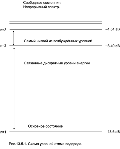 , то — сильно возбуждёнными. Рисунок 13.5.1 иллюстрирует формулу (5.2) для атома водорода. Пунктиром