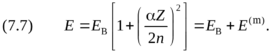 Первое слагаемое, как легко убедиться, с точностью до обозначений равно значению энергии (5.2) в нерелятивистской теории Бора, а второе представляет собой искомую релятивистскую поправку. Обозначим первое слагаемое как EB, тогда