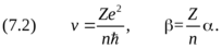 Постоянная тонкой структуры введена в формуле (2.2.1) первой главы. Зная скорость, вычисляем радиус орбиты: