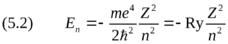 В первой главе мы ввели ридберг, исходя из соображений размерности. Формула (5.2) раскрывает физический смысл этой константы как удобной единицы измерения энергии атома. Кроме того, она показывает, что Ry зависит от отношения
