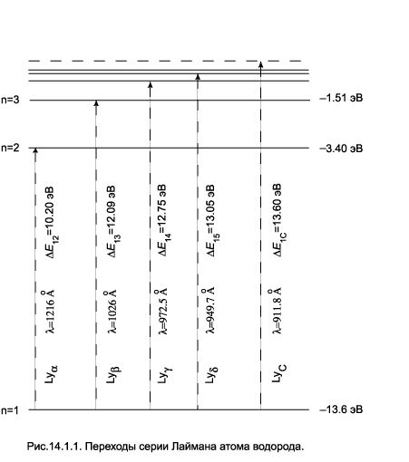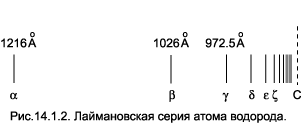 ереходы, а на рис.14.1.2 — спектральные линии лаймановской серии атома водорода.