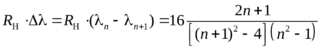 Заметное расхождение красной и синей линий на рис.14.1.4 не позволяет считать фотоэффект непосредственной причиной рассматриваемого явления. Здесь важную роль играет наложение линий бальмеровской серии при больших значениях n. Вычислим разность длин волн двух соседних переходов: i 2 и (i+1) 2. Дважды воспользуемся формулами (1.3), (1,4) при j = 2, заменив индекс i на n: