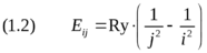 При радиационном переходе с j на i поглощается квант с такой же энергией. В планетарной модели атома водорода энергия уровней вычисляется по формуле (13.5.2), причём заряд ядра равен единице: