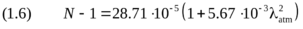 Здесь атмосферная длина волны выражена в микронах. В правую часть (1.6) можно подставить также vac: незначительная ошибка в длине волны мало сказывается на величине N – 1.