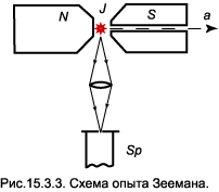 Расщепление линий в магнитном поле было предсказано Лоренцом задолго до появления квантовой теории и экспериментально проверено Зееманом. Схема опыта Зеемана приведена на рис.15.3.3.