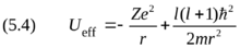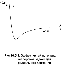 в квантовой теории, как и в классической механике, принято называть «центробежным потенциалом», а сумму (5.4) — «эффективным потенциалом». Профиль эффективного потенциала схематически изображён на рис.16.5.1.