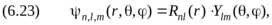 Разложение (6.23) волновой функции на множители, каждый из которых зависит либо от радиальной, либо от угловых координат, позволяет разбить общее условие нормировки