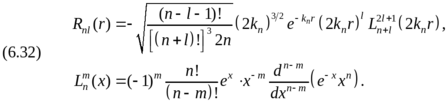 Для справочных целей выпишем полные выражения для нормированных волновых функций. Сумма в (6.24) с рекуррентным соотношением (6.25) для коэффициентов может быть выражена через так называемую гипергеометрическую функцию. Радиальная часть волновой функции с учётом условия нормировки равна