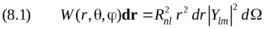 как и волновая функция, распадается на радиальный и угловой множители. Проинтегрировав (8.1) по всем направлениям, получим вероятность найти электрон в шаровом слое между сферами радиуса r и r + dr: