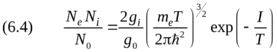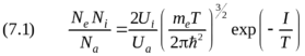 Приведём без вывода точное выражение для формулы Сахá, полученное методами химической термодинамики: