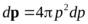 В пространстве импульсов удобно перейти к сферической системе координат. С учётом изотропии интегрирование по угловым переменным сводится к умножению на 4π:
