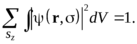 Квадрат модуля верхнего элемента |ψ1|2 dV равен вероятности того, что электрон находится в элементе объёма dV, а проекция его спина на ось z равна +½. Соответственно, |ψ2|2 dV есть вероятность того, что у электрона, находящегося в том же элементе объёма dV, проекция спина равна –½. Волновая функция (3.2) предполагается нормированной:
