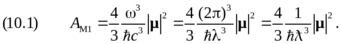 Магнитный момент электрона в атоме по порядку величины близок к магнетону Бора μ0. Для оценки численного значения AM1 подставим в (10.1) μ0 вместо |μ|. В результате получим: