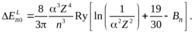 Числа в четвёртой строке равны отношению величины тонкой структуры и лэмбовского сдвига для каждого иона или атома. Выражение для лэмбовского сдвига содержит кубическую зависимость от , а не квадратичную, как тонкая структура. Однако, за счет логарифмического множителя разница в энергиях расщепления получилась всего один порядок величины, а не два, как можно было ожидать.