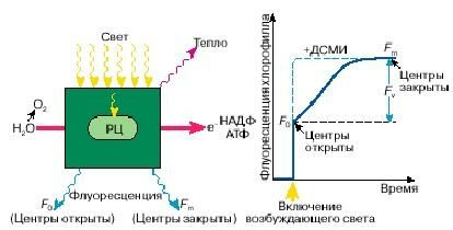 Как видно, величина Fv соответствует той части энергии света, которая используется открытыми реакционными центрами в фотосинтезе, то есть может характеризовать активность начальных стадий фотосинтеза (Рис3).