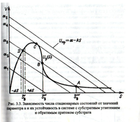 В интервале α2< α < α4 система имеет три различных стационарных состояния, а значения α2 и α4, при которых изменяется число стационарных точек, являются бифуркационными.