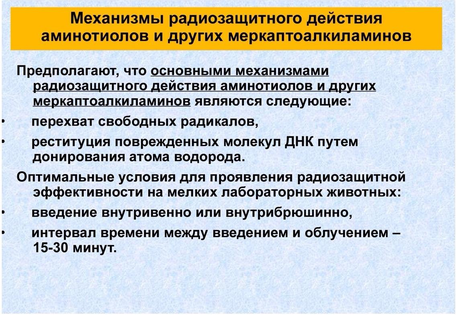 Преимущества- меньшая токсичность , более длительный интервал проявления противолучевой активности