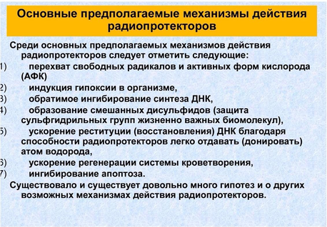 Противолучевые химические средства. Классификация?. Механизмы действия.