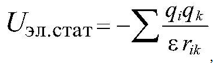 где qi, qk - заряды на атомах (i и k), rik - расстояние между атомами, эпсилон - диэлектрическая постоянная.
