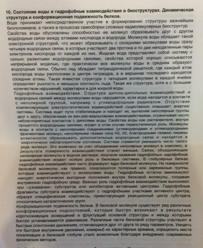Состояние воды и гидрофобные взаимодействия в биоструктурах. Динамическая структура и конформационная подвижность белков.