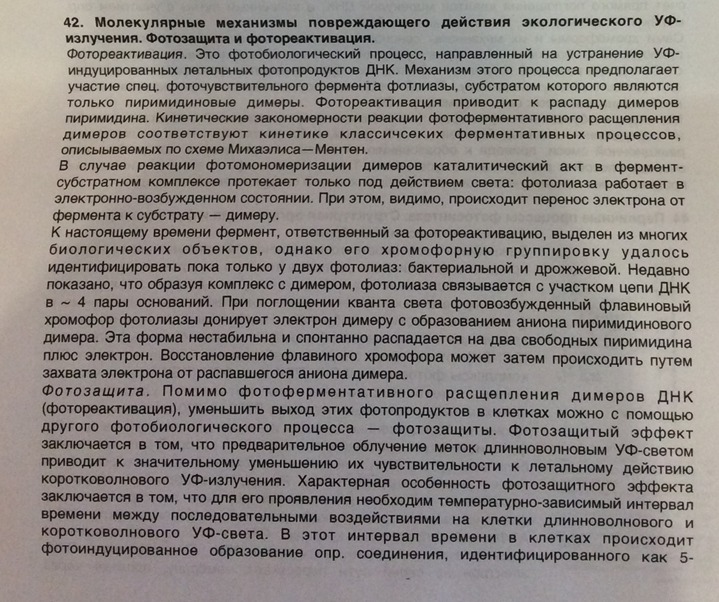 Фотозащита и фотореактивация.