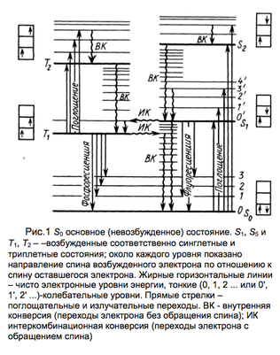Наряду с электронными переходами в молекуле, сопровождающимися испусканием фотона (флуоресценцией и фосфоресценцией),