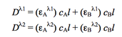 Если молярные коэффициенты поглощения для обоих веществ εA и εB известны, равно как и толщина кюветы l, то найти неизвестные концентрации cA и cB все равно нельзя, если измерения DA+B проводились при одной длине волны. Для двух разных длин волн случают систему из двух уравнений с двумя неизвестными, решив которую, находят обе концентрации:
