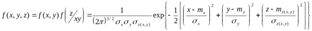 f(x,y,z) — закон рассеивания точек подрыва.