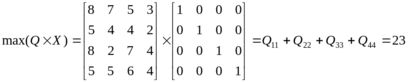 Правило заполнения матрицы сводится к выбору максимального элемента и вычеркиванием той строки и столбца, на пересечении которых лежит максимальный элемент. Далее из оставшихся элементов снова выбирается максимальный элемент и так до просмотра всей матрицы.