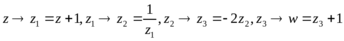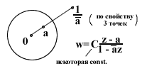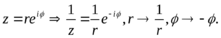- называется инверсией и является композицией двух симметрий (относительно единичной окружности (*) и относительно вещественной оси).