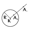 , (ОМР – прямой угол, среднее геометрическое, r = OM’).