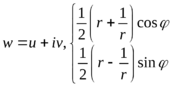 - функция, обратная функции Жуковского. Знак выбрали так, чтобы z лежало в единичном круге (помним, что