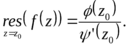полюс 1ого порядка. Можно применить доказанную формулу: